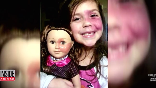 Her little girl, Nevaeh, 5, was born with a birthmark on her face and when she received the doll as a gift, couldn’t help but notice its unmarked completion.
