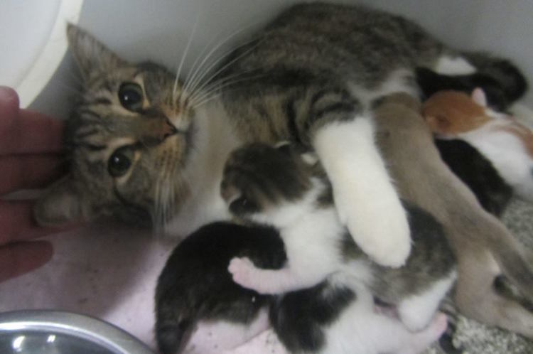 Coincidentally, two nursing felines didn’t mind taking in another mouth to feed – and the difference in species didn’t seem to get in the way of their motherly instincts.