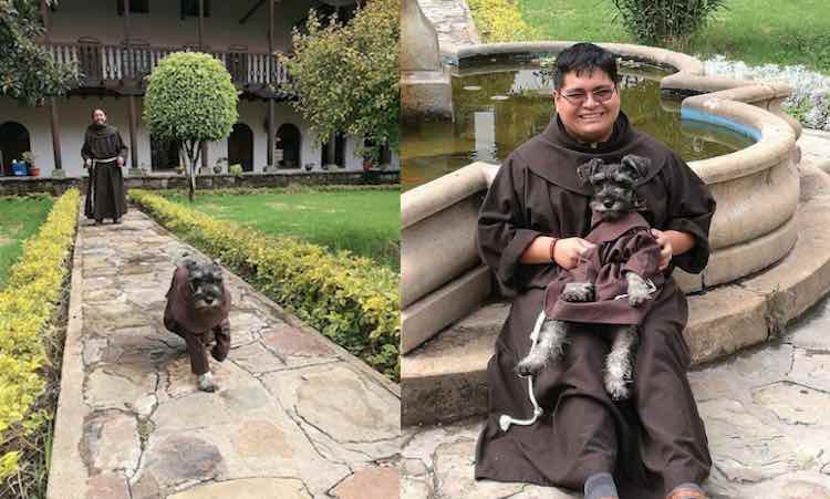 The pup has become a beloved part of the monastery, spreading love, cuddles, and teaching to the pond’s local fish. Carmelo has even taken a liking to his new friar’s robes.