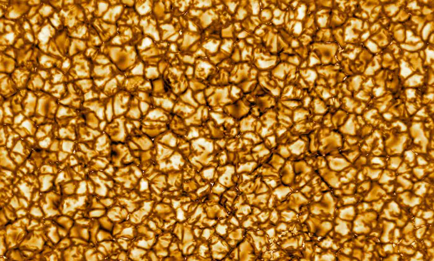 These first images from NSF’s Inouye Solar Telescope show a close-up view of the sun’s surface, which can provide important detail for scientists. The image shows a pattern of turbulent “boiling” plasma that covers the entire sun. The cell-like structures—each about the size of Texas—are the signature of violent motions that transport heat from the inside of the sun to its surface. That hot solar plasma rises in the bright centers of “cells,” cools off and then sinks below the surface in dark lanes in a process known as convection.