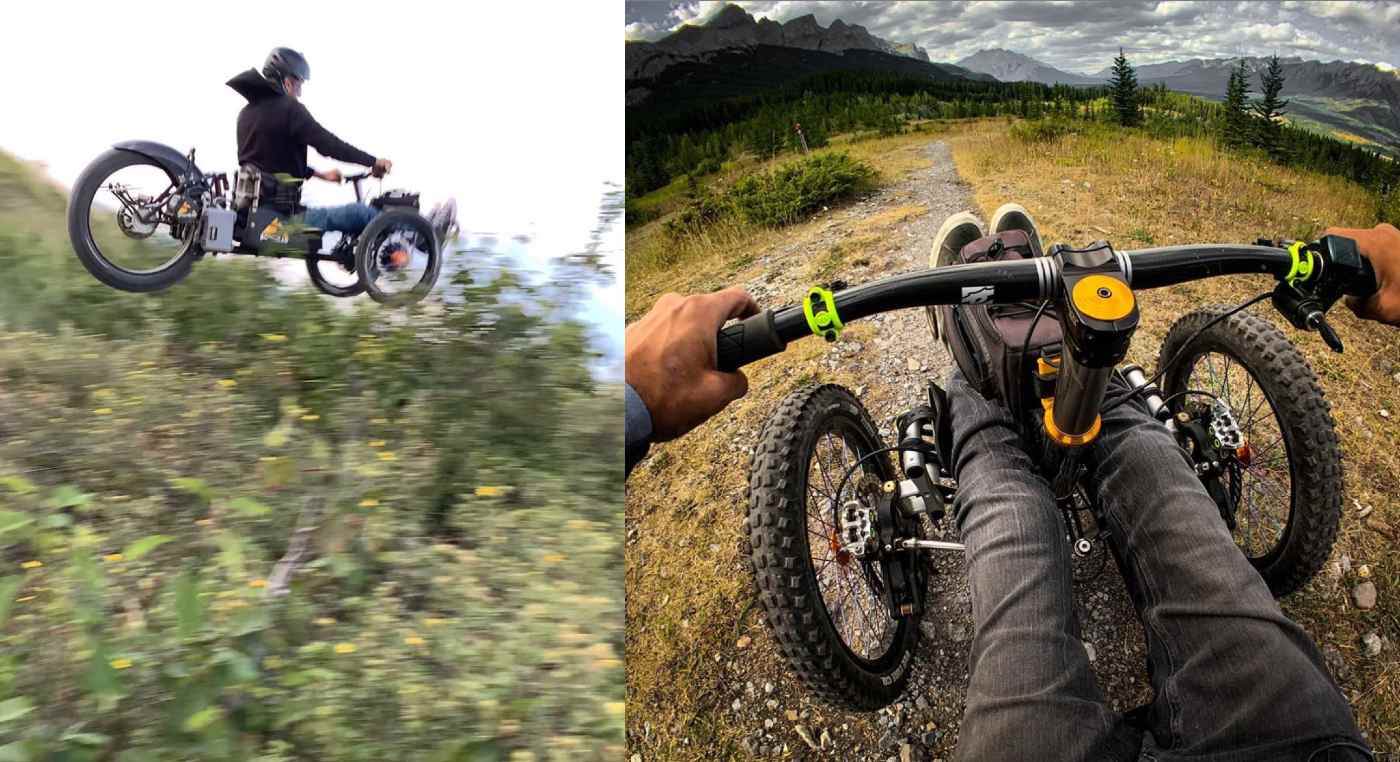 The all-terrain recumbent bike comes in three models: a recreational model for everyday adventuring; a performance model for true adrenaline junkies, and the explorer mode, a push variation that allows for partnered assistance as needed.