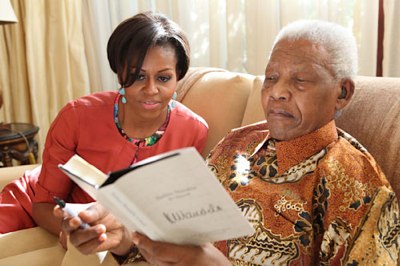 Next came a visit with Mandela himself at his home nearby. The photos that emerged from that personal meeting (courtesy of the Mandela Foundation) showed him presenting Mrs Obama with an advance copy of his soon to be released book, Nelson Mandela By Himself: The Authorized Quotations Book.