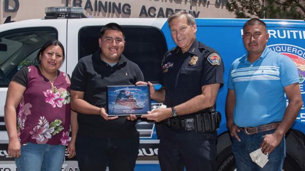 Jose’s childhood dream has been to work in law enforcement himself, as a crime scene investigator and currently studies criminal justice at Central New Mexico Community College. On Tuesday, he received an unexpected call from Officer Drobik, asking him what it was like to be considered a “hero” in his community—and even though Jose said he didn’t feel like a hero, the mayor and police chief held a ceremony to honor him, anyway.