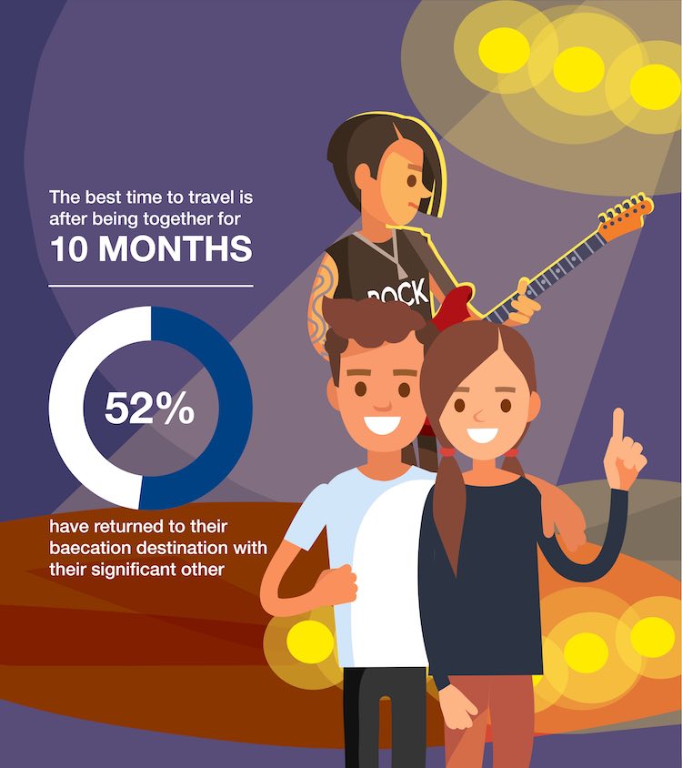 Why are romantic getaways important? The survey found that 37% of participants fell in love on their first baecation, while 23% broke up because of the trip!
