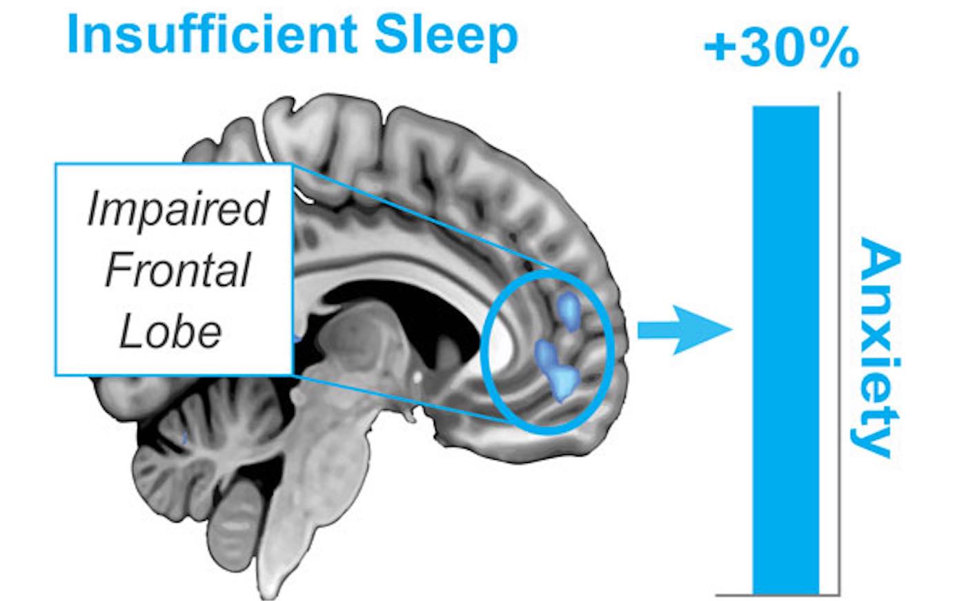 After a night of no sleep, brain scans showed a shutdown of the medial prefrontal cortex, which normally helps keep our anxiety in check, while the brain’s deeper emotional centers were overactive.