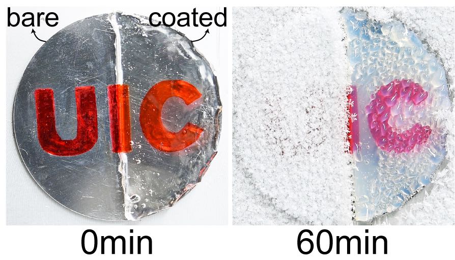 Working with Ph.D. student Rukmava Chatterjee, they accomplished their goal by developing 80 different anti-freezing coatings, which can be classified as polymeric solutions, emulsions, or gels. The formulations can be easily applied to aluminum, steel, copper, glass, plastic or any industrial surface without preconditioning or expensive surface treatments.
