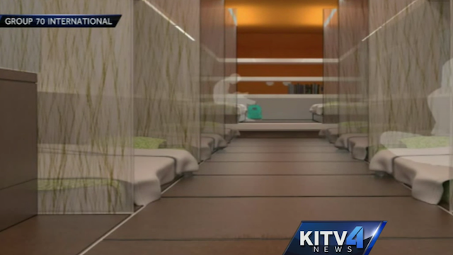Architecture firm Group 70 International has drawn up three distinct designs with some of the buses providing sleeping space for up to eight people (pictured at right), others will be turned into mobile showers and still others converted into recreation centers.