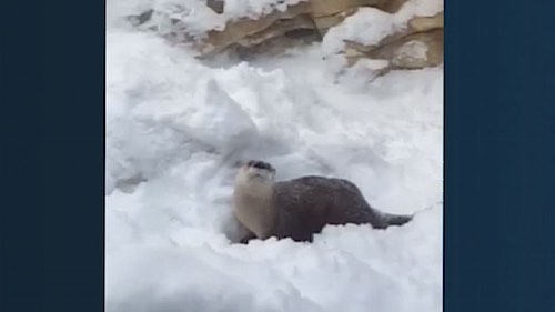 The Minnesota Zoo posted a video of their resident otter taking a belly-run down a hill after a blanket of snow fell.