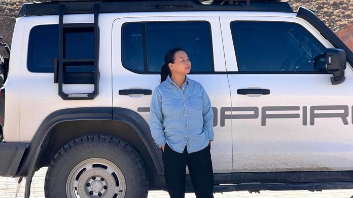 The ‘Road-tripping Auntie’ next to her third car – credit: Su Min, released.