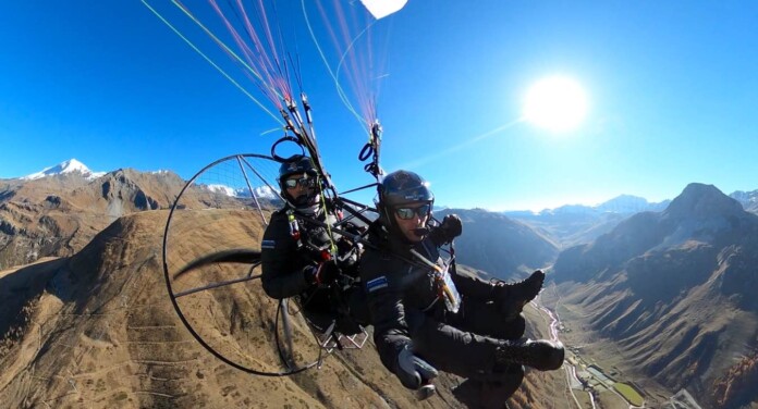The ‘World’s Most Intrepid Twins’ announced they’ve broken a world record, by flying a tandem electric para-motor 8,000ft over the French Alps.
