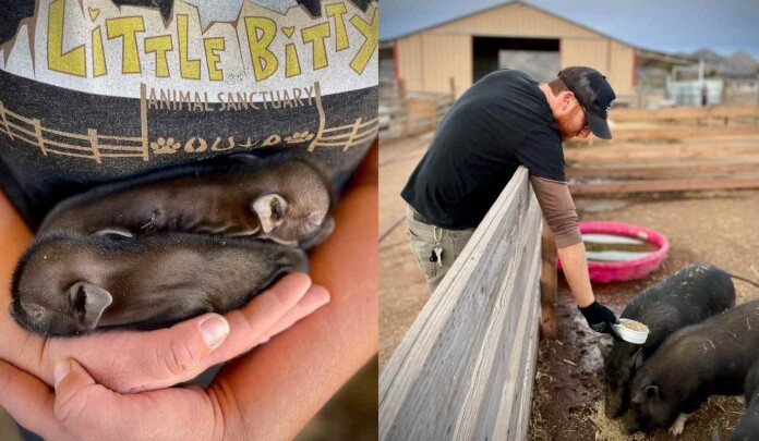 (left) when the piglets first arrived in 2022, and their current size – credit, Little Bitty Animal Shelter, Ranchita. Retrieved from Facebook.