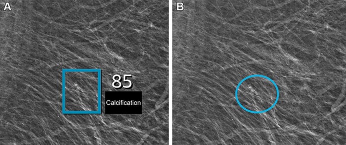 Compared to screening without AI, screening with the AI system detected significantly more breast cancers (0.82% versus 0.70%) and had a lower false-positive rate (1.63% versus 2.39%).