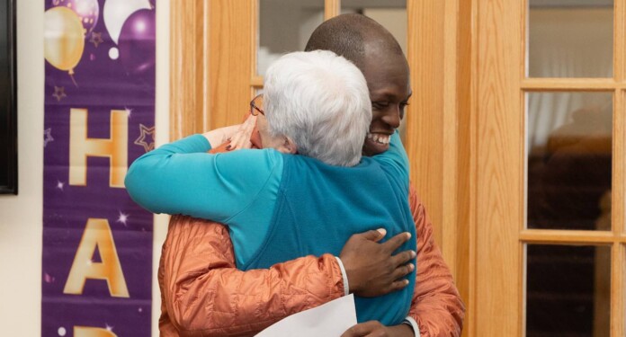 Karen Solomon hugs Seyi Fayanju – courtesy of Debra Solomon