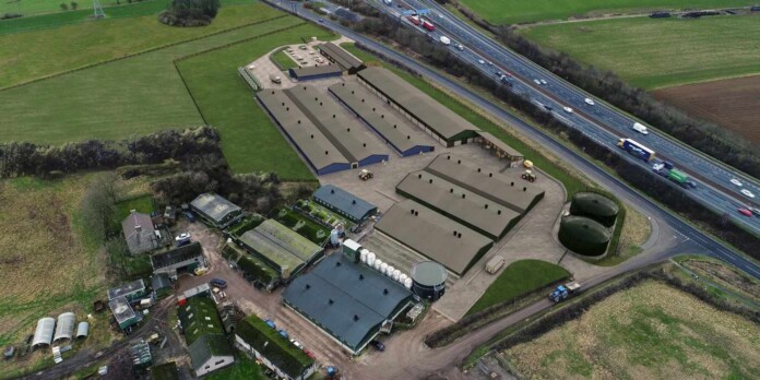 A digitally made image of the University of Leeds’ Research Farm with attached fly breeding center – credit, Entocycle.