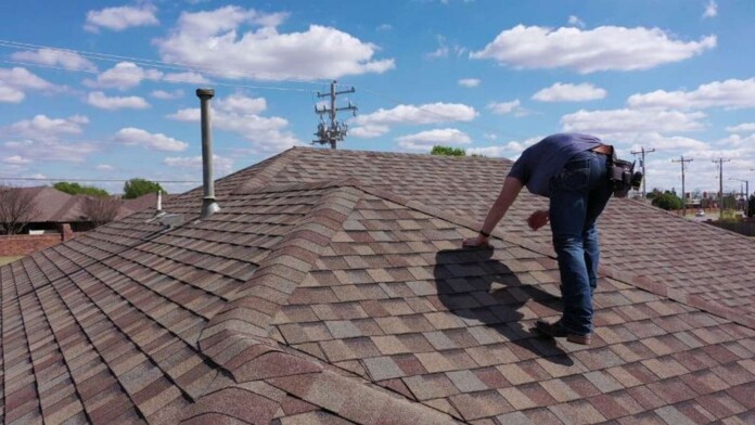 A Graco worker inspects a roof – credit, Graco Roofing and Construction