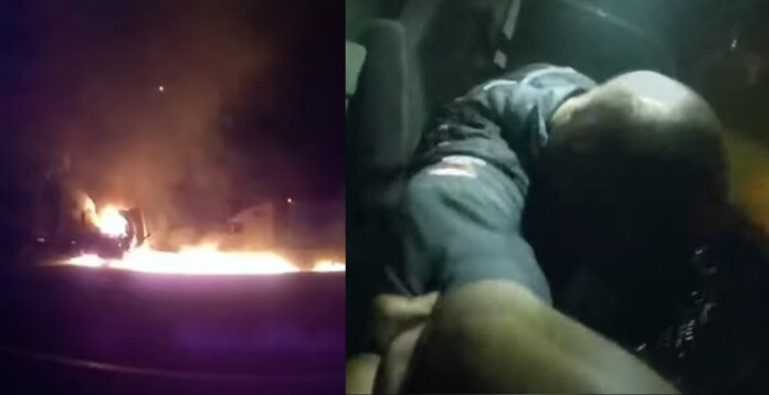 Cop Saves Unconscious Driver From Burning Truck, ‘I’m either going to die here with him or get him out’ –WATCH