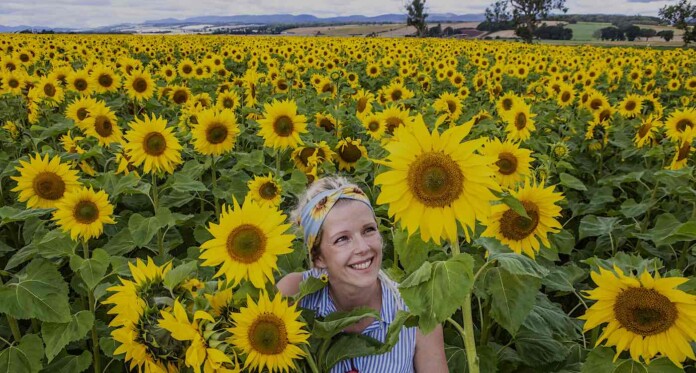 Victoria Geatons explores Gloagburn Farm sunflower trail in Perthshire – SWNS