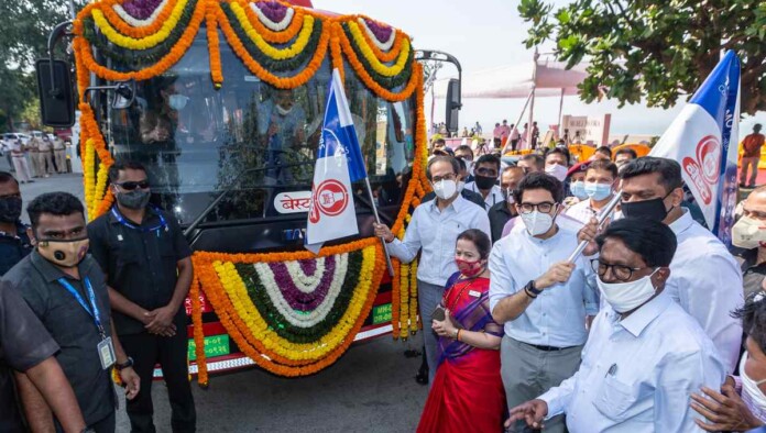 Maharashtra Chief Minister inaugurates the first of 340 electric buses by Tata to service the Mumbai Electric Supply and Transport