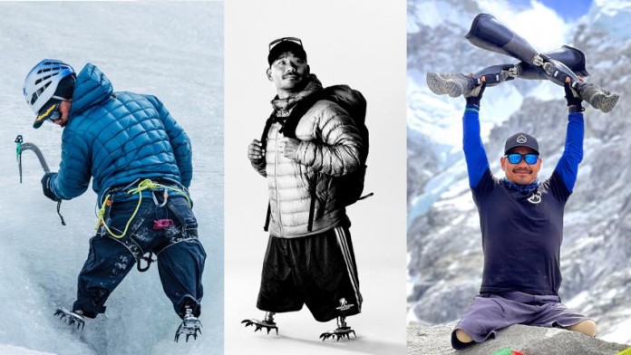 He used a variety of interchangeable prosthetics for the climb, which included some equipped with ice spikes, and others with mountaineering boots attached.