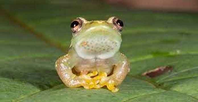 Frogs typically use sounds to attract a mate, but the males of this species have tiny spines on their throats, which scientists think females might use to identify the males.