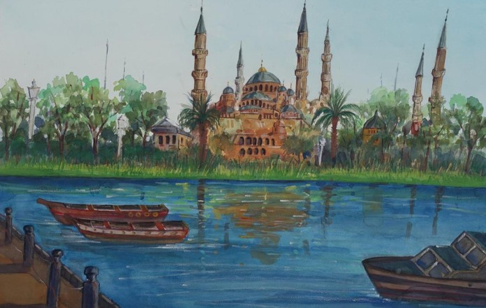 “Painting makes me feel as if I am embracing the universe…,” wrote Ghaleb Al-Bihani, a Yemeni imprisoned without charge for 15 years before being released in 2017 to Oman, where he now teaches painting.