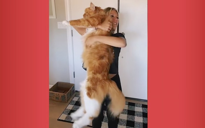 Finn, a six-year-old Maine Coon, with Natalie – SWNS