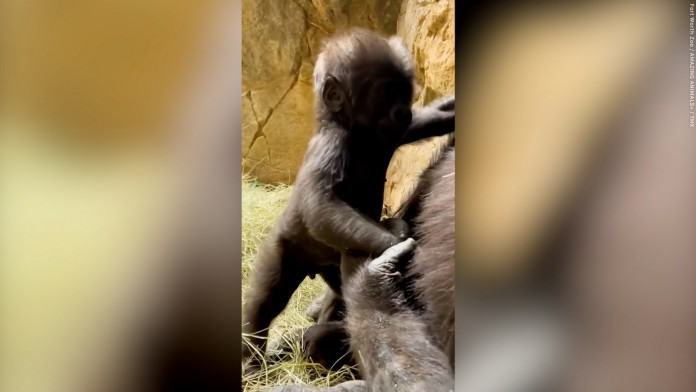 “He just crawls to the top of her shoulder, and they walk around together. He manages to hang on somehow.”