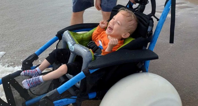 A little boy finally got to play in the sea, thanks to the use of a beach wheelchair—and his laughter brought his mom to tears.