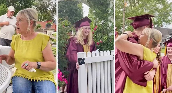 When her last class of Kindergarten students were all grown up and ready to graduate cap-and-gown, Hamilton’s daughter Kim organized for them to throw a surprise that racked up 3.2 million views on TikTok.