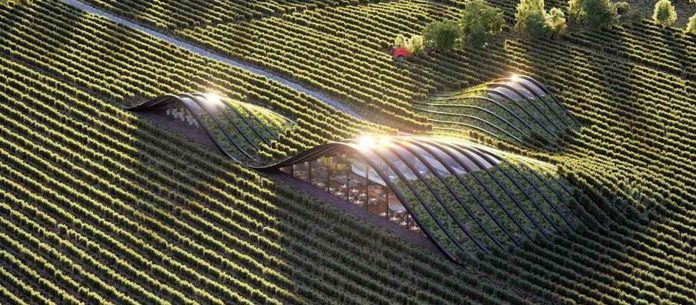 Built three years ago in the Kakheti region, the Shilda Winery consists of three artificial caves that gently rise up from the ground, bringing the rows of grapes with them.