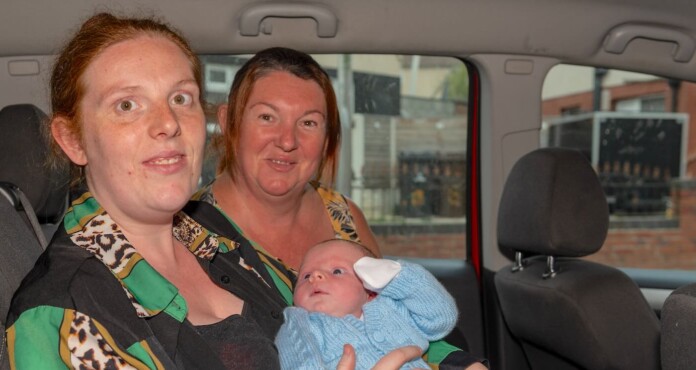 Her mother Sonja Cook thought she would only be babysitting the couple’s other children while they gave birth at the hospital in South Yorkshire, England, but suddenly she heard her daughter shout, ‘it’s coming,’ from the car.