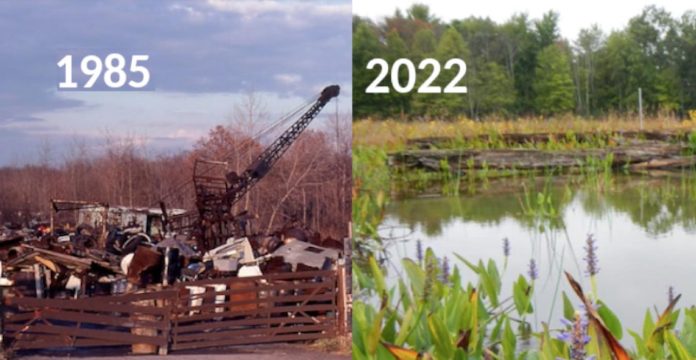 The Krejci dump before and after in Cuyahoga Valley – Chris Davis / National Park Service