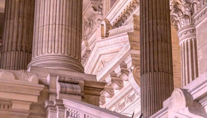 The low-carbon concrete façade and skeleton of the hotel are inspired by aspen bark, and is crafted from a super insulating material that will greatly reduce energy consumption.