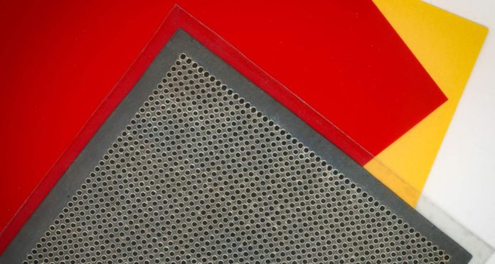 To build the loudspeaker, the researchers used a laser to cut tiny holes into a thin sheet of PET, which is a type of lightweight plastic. They laminated the underside of that perforated PET layer with a very thin film (as thin as 8 microns) of piezoelectric material, called PVDF. Then they applied vacuum above the bonded sheets and a heat source, at 80 degrees Celsius, underneath them.