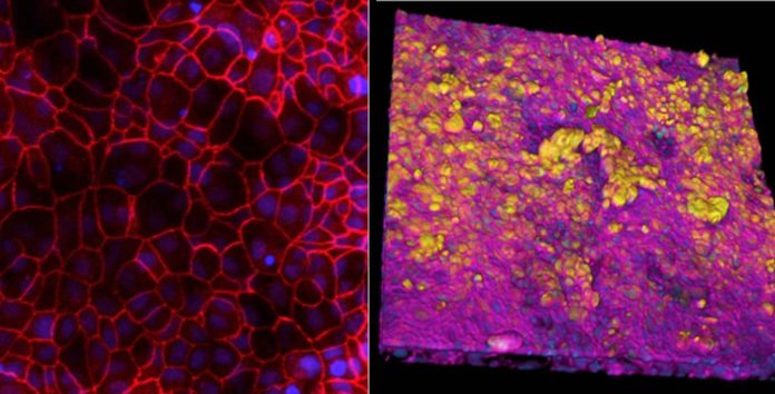 When the team infected these “breathing” Alveolus Chips with H3N2 influenza by introducing the virus into the air channel, they observed the development of several known hallmarks of influenza infection, including the breakdown of junctions between cells, a 25% increase in cell death, and the initiation of cellular repair programs. Infection also led to much higher levels of multiple inflammatory cytokines in the blood vessel channel including type III interferon, a natural defense against viral infection that is also activated in in vivo flu infection studies.
