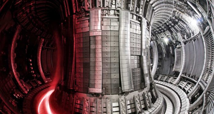 The Joint European Torus (JET) tokamak in Oxford, UK, created a spinning plasma controlled by superconducting magnets which fused hydrogen isotopes together into helium. The neutrons given off as energy during this process generated 59 megajoules of energy, around twice as much as what JET produced the last time it ran this experiment in 1997.