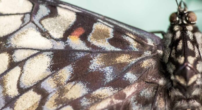 The wings of this most charismatic insect are cloaked in tiny scales—up to 200,000 of them, which contain a lattice-work of chitin ribbons unique to each scale. It was these scales which a Serbian technology student at the Institute of Physics, Belgrade, thought could serve as the ultimate form of security code or authenticity stamp.