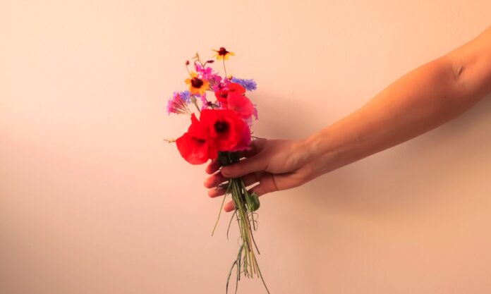 The artwork space seems to be completely filled with flowers (especially because of the mirrored floor), but enter and pause, and the blossoms slowly rise to the ceiling whenever people approach, opening spaces previously concealed.