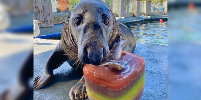 Last month the Cornish Seal Sanctuary celebrated the 31st birthday of one of their favorite residents—and the team spoiled him with a colorful layered ice cake.