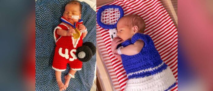 A hospital presented its new born babies with tiny hand-crocheted Olympian outfits and gold medals.