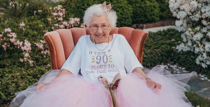 G-Ma’s family organized a throne, tutu, cake, balloons, biscuits in the shape of her face, crown, and a custom t-shirt that read ‘It took me 90 years to look this good!’.