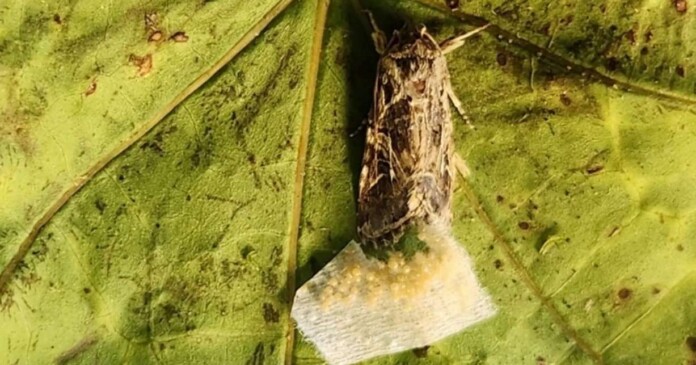 A moth laying eggs on a tomato plant – credit, Tel Aviv University