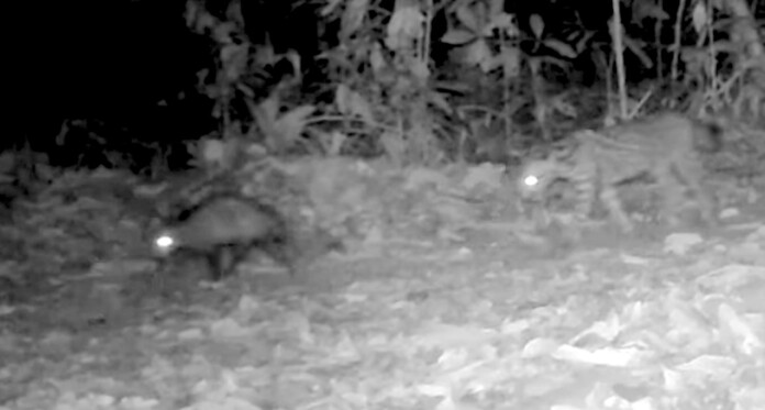 Ocelot and Opossum Walking Together in Amazon – Trail cam footage by Cocha Cashu Biological Station in Peru