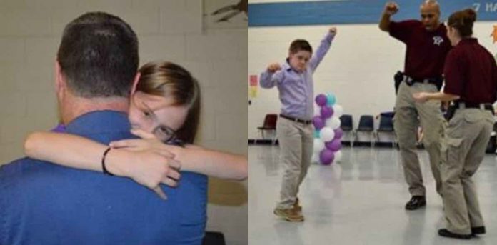 So as a means of encouraging the kids who had no parents at Bonlee Elementary School’s Daddy/Daughter and Mother/Son Dance, some compassionate police officers showed up to bust a move instead.