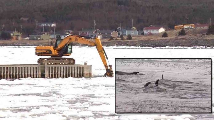 Legge then moved an excavator up to the edge of the water and started digging out large chunks of ice from the harbor. Once a substantial amount of ice had been cleared, other rescuers took their boats into the water so they could continue cutting a path to the sea.