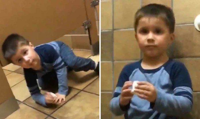 4-year-old Levi Stevens started his conversation with Andrew by asking what his name was as he crawled into the stall. He then politely explained that he was too short to use the sink and he needed help washing his hands.