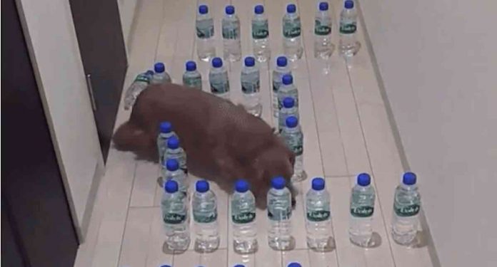 Takao showed off his thinking abilities earlier this week when he successfully maneuvered a maze of plastic water bottles that was erected by his owner.