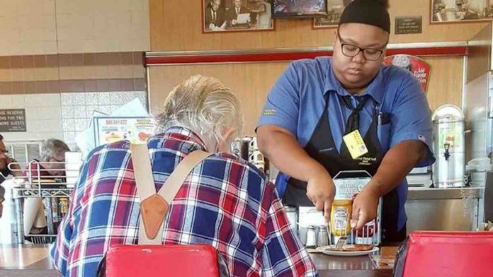 As she was cutting up the ham, another patron at the restaurant witnessed the sweet exchange, snapped a photo, and posted it to Facebook where it was shared thousands of times.