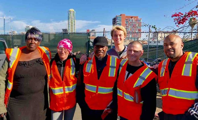 The program pays homeless residents $11.50 an hour to perform daytime labor shifts around the city, like picking up trash and erasing graffiti. Alpha Project, the organization that started the program, then helps to connect the workers with social workers, housing, and financial advisors.
