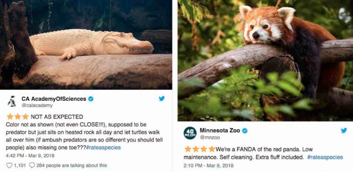 Since then, dozens of wildlife specialists, aquariums, and zoo pages have joined in on the fray with amusing #RateASpecies reviews of their own.